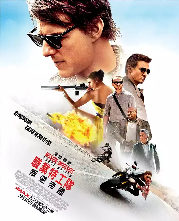 别名:碟中谍5神秘国度 / 不可能的任务5失控国度 / Mission: Impossible - Rogue Nation / Mission: Impossible 5 / 碟中谍5 / 职业特工队:叛逆帝国 / 不可能的任务:失控国度 / 碟中谍:失控国度 / M:i 5